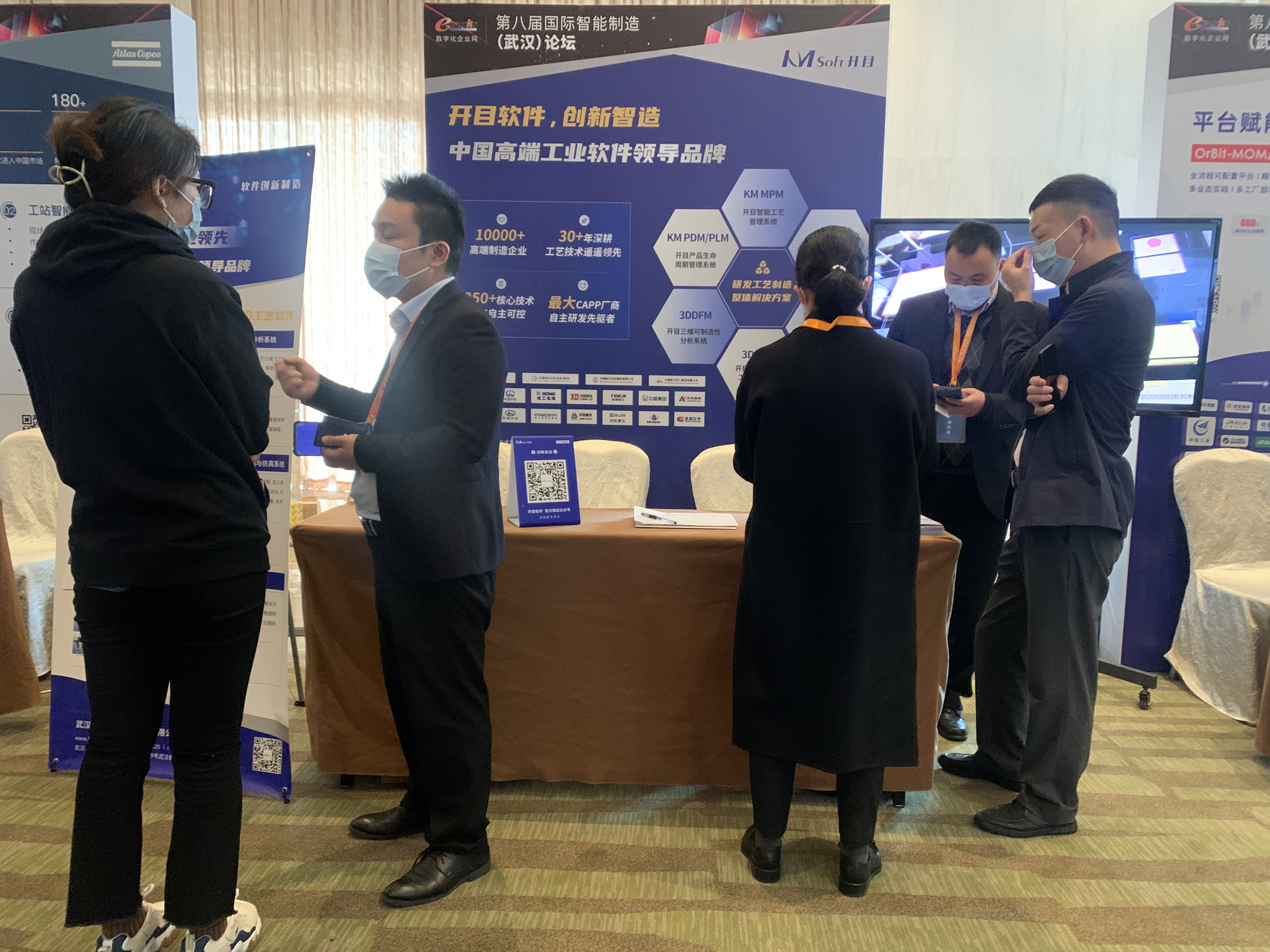 在会场外展示区,开目软件全面展示了自主研发的PLM、MPM、MES等一系列覆盖设计、工艺、制造环节的一体化智能制造解决方案以及以KMCAPP、3DAST、3DMPS、3DDFM为代表的国内领先的智能工艺工具产品。专业先进的产品,详实的讲解,丰富的展示,“开目智造”一经登场便吸引了众多参观嘉宾驻足交流。