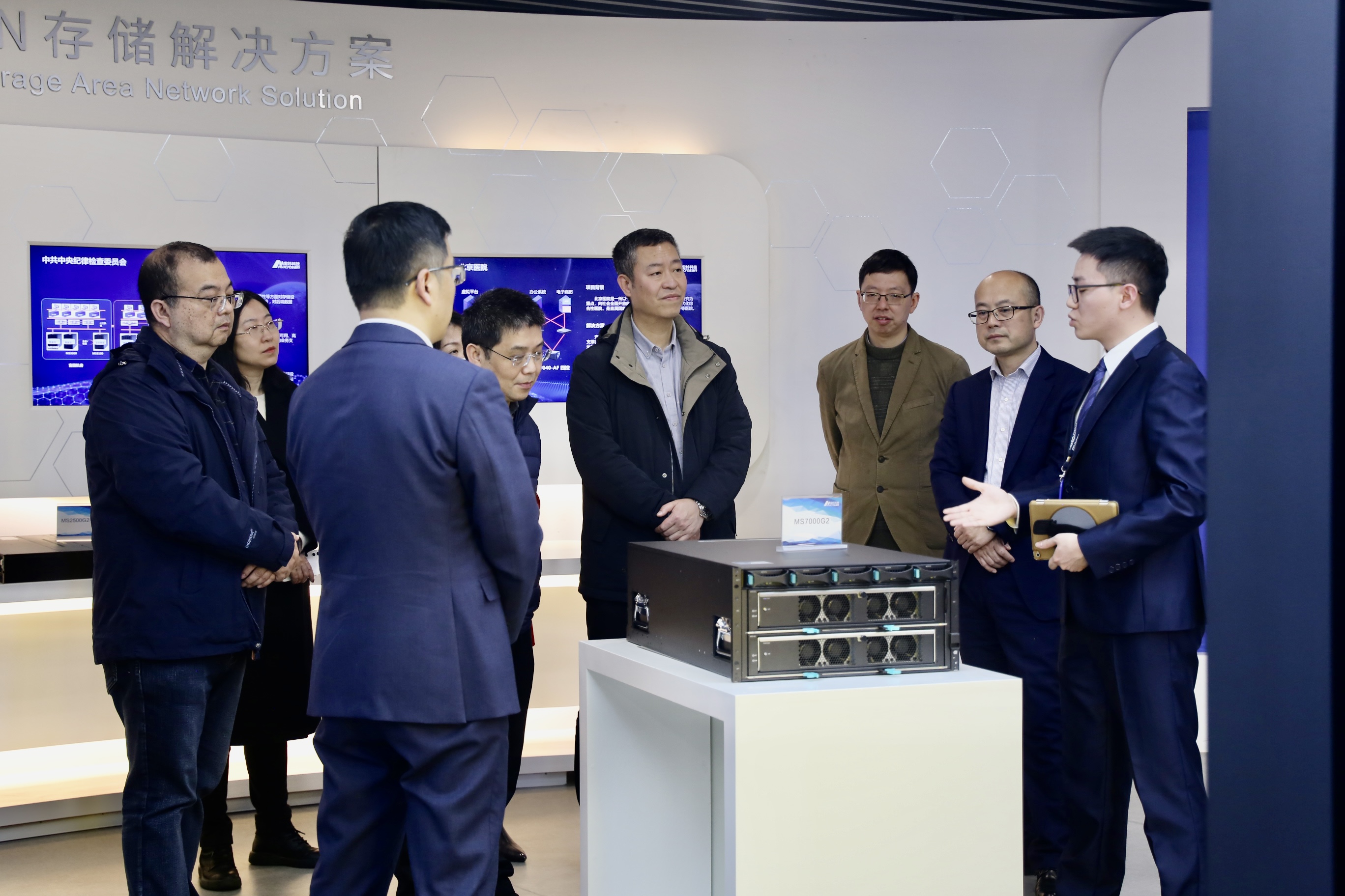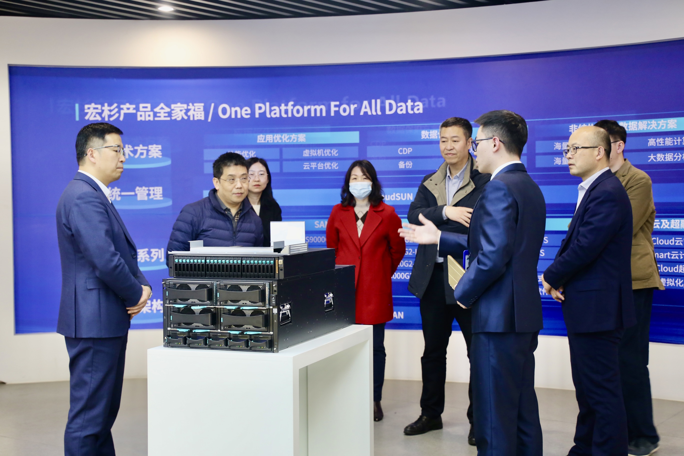 本次参观交流,宏杉科技相关领导热情的接待。在交流期间,双方人员根据各自负责业务领域的好的做法、成功经验和亮点成果进行深度分享。同时,也就后期的双方进一步紧密合作、互惠共赢方面做了初步的交流、探讨、畅想。