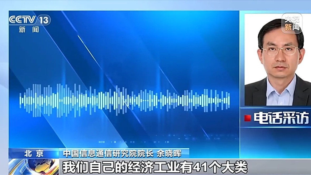 中国信息通信研究院院长余晓晖:我们自己的经济工业有41个大类,666个小类,这是工业本身的特点。所以在这个方案中,是按不同的方式来考虑的,既有低效设备的替代,也有高端先进设备的更新升级,那么也有试验检测设备的更新升级。