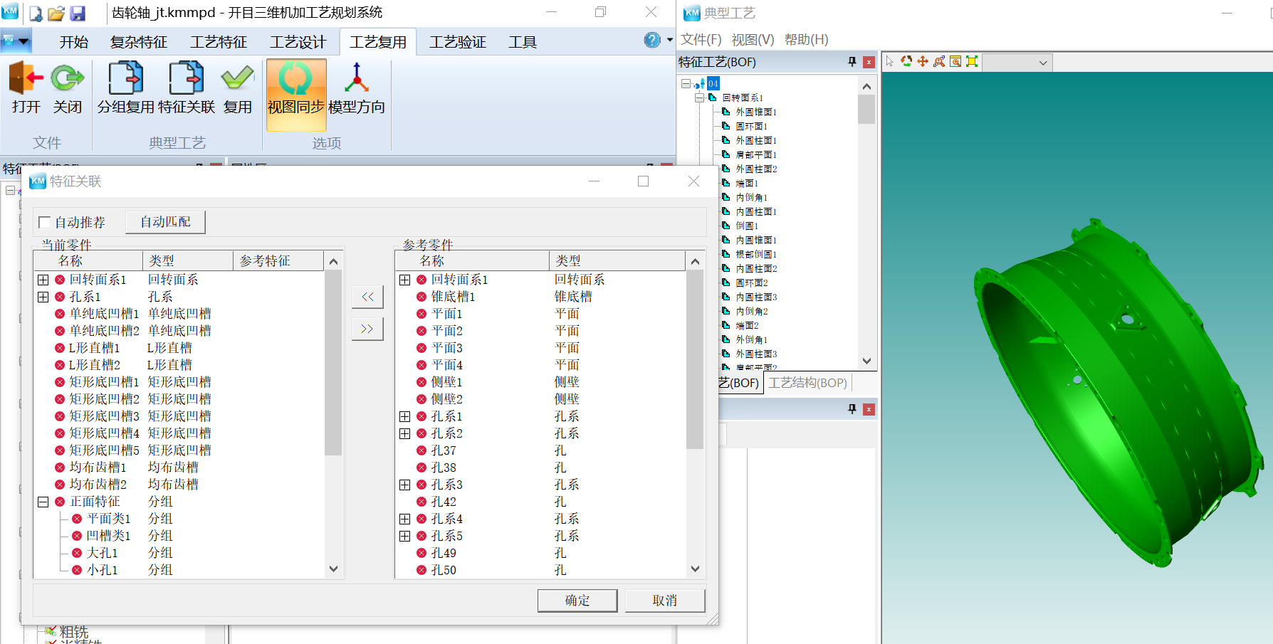 ? 基于成组技术的特征识别。在特征识别结构树中增加分组的功能,以组为单位进行加工特征识别与展示,实现快速特征识别,提高工艺效率。