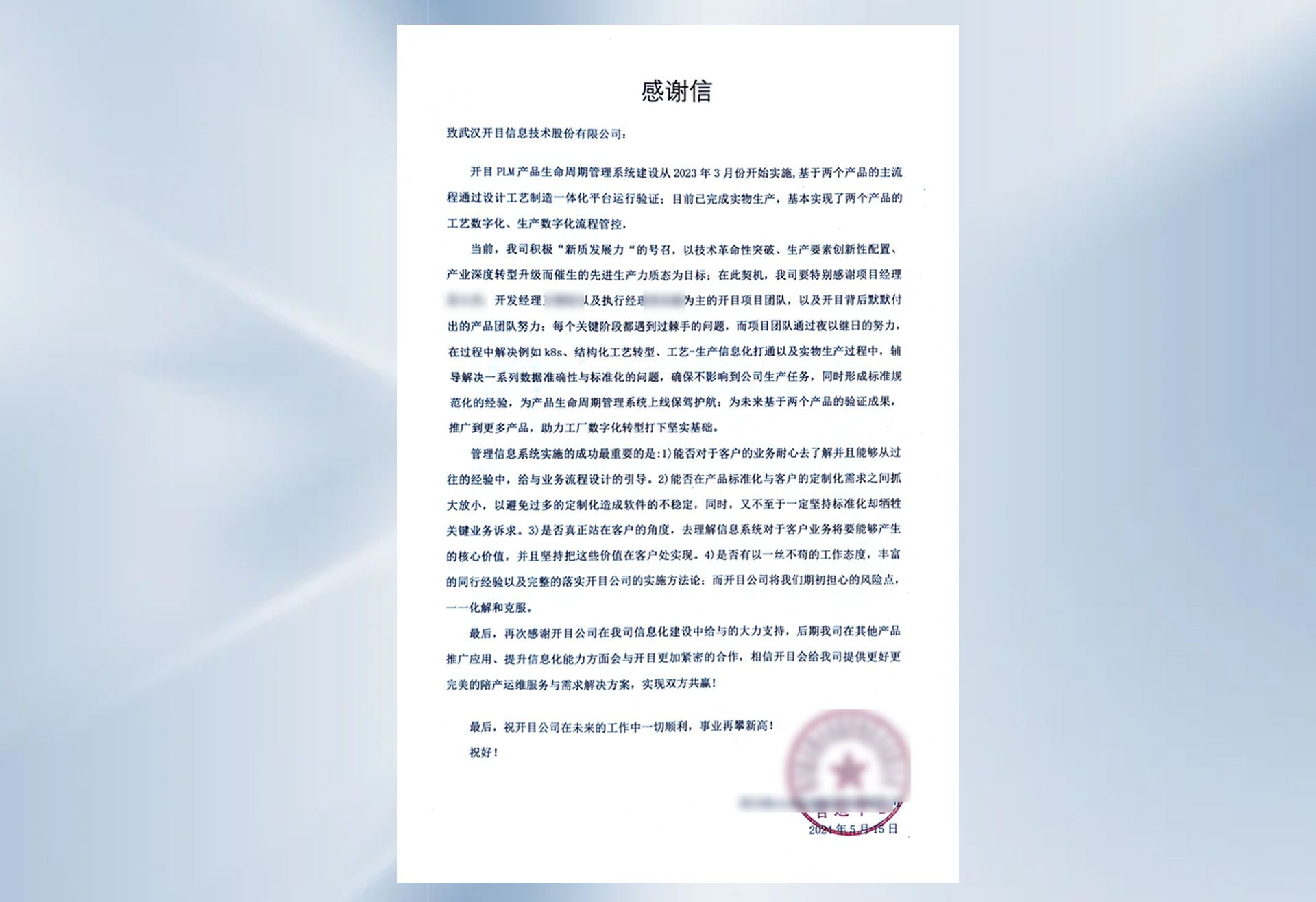 求动能之变,谋长远之策,蓄未来之势。作为企业的长期战略合作伙伴,后续,开目软件将继续配合航天科技集团某公司的数字化转型战略规划,不断推动企业研发水平“向新图强”、研制任务“向新发力”、生产能力“向新而行”,为企业打造高质量发展的动力“引擎”。